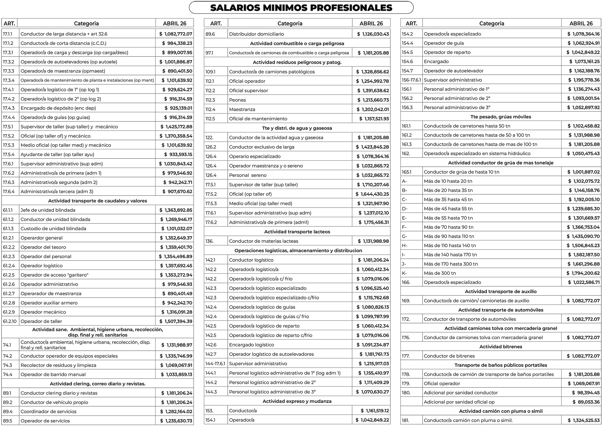 Escala Salarial Abril 2026