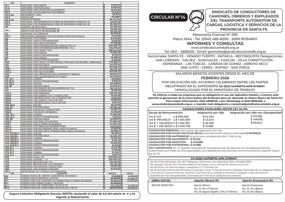 Escala Salarial Febrero 2026